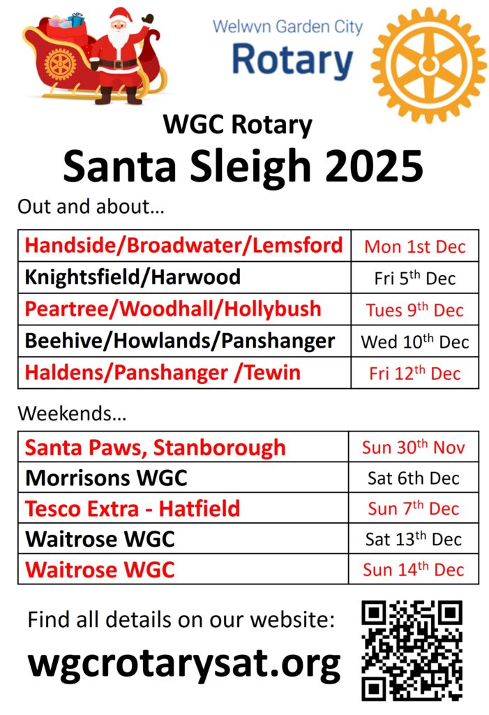 Santa and his sleigh are back and will be touring Welwyn Garden City this Christmas. This year will be premiering the exclusive Rotary Santa Paws event.
